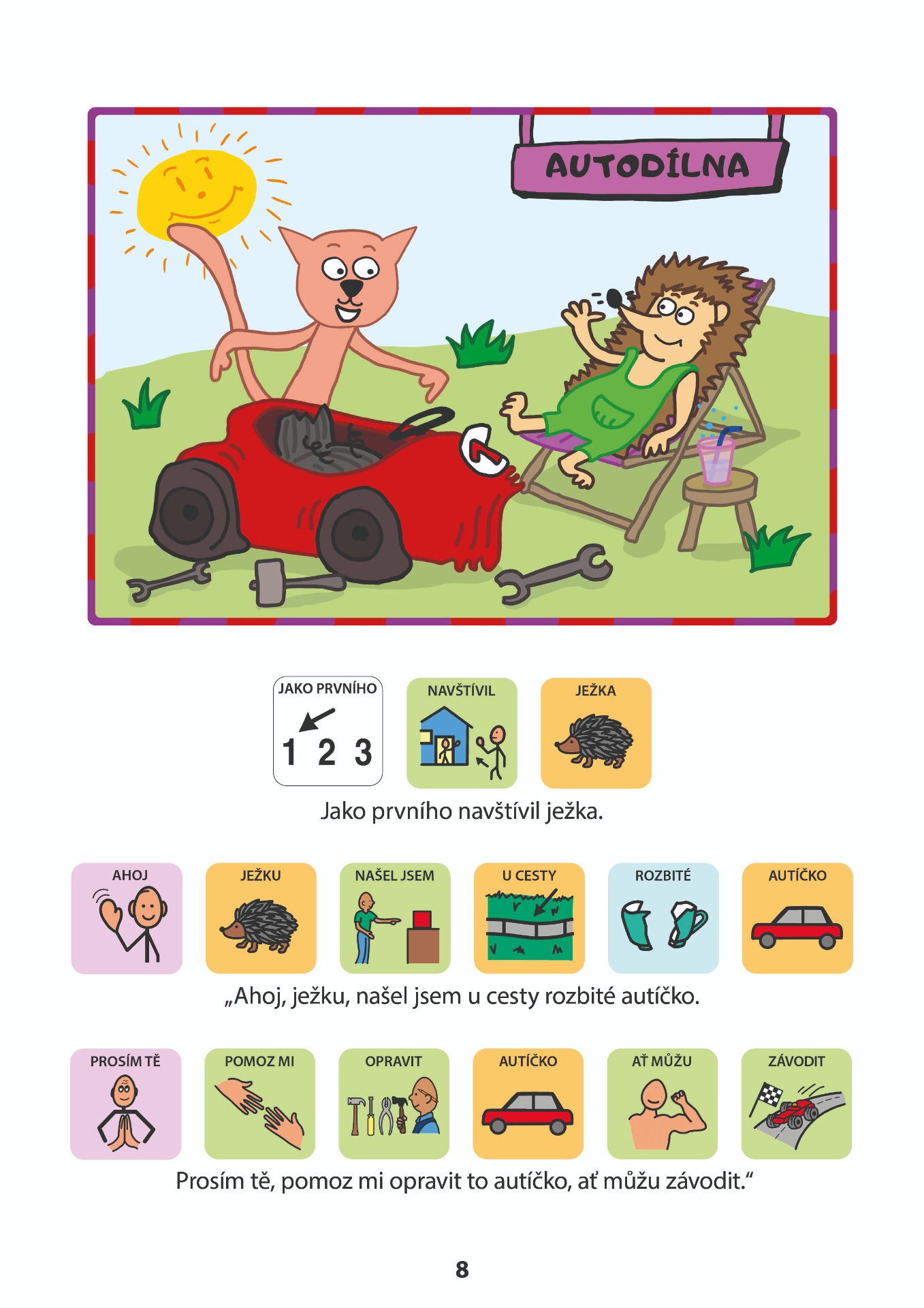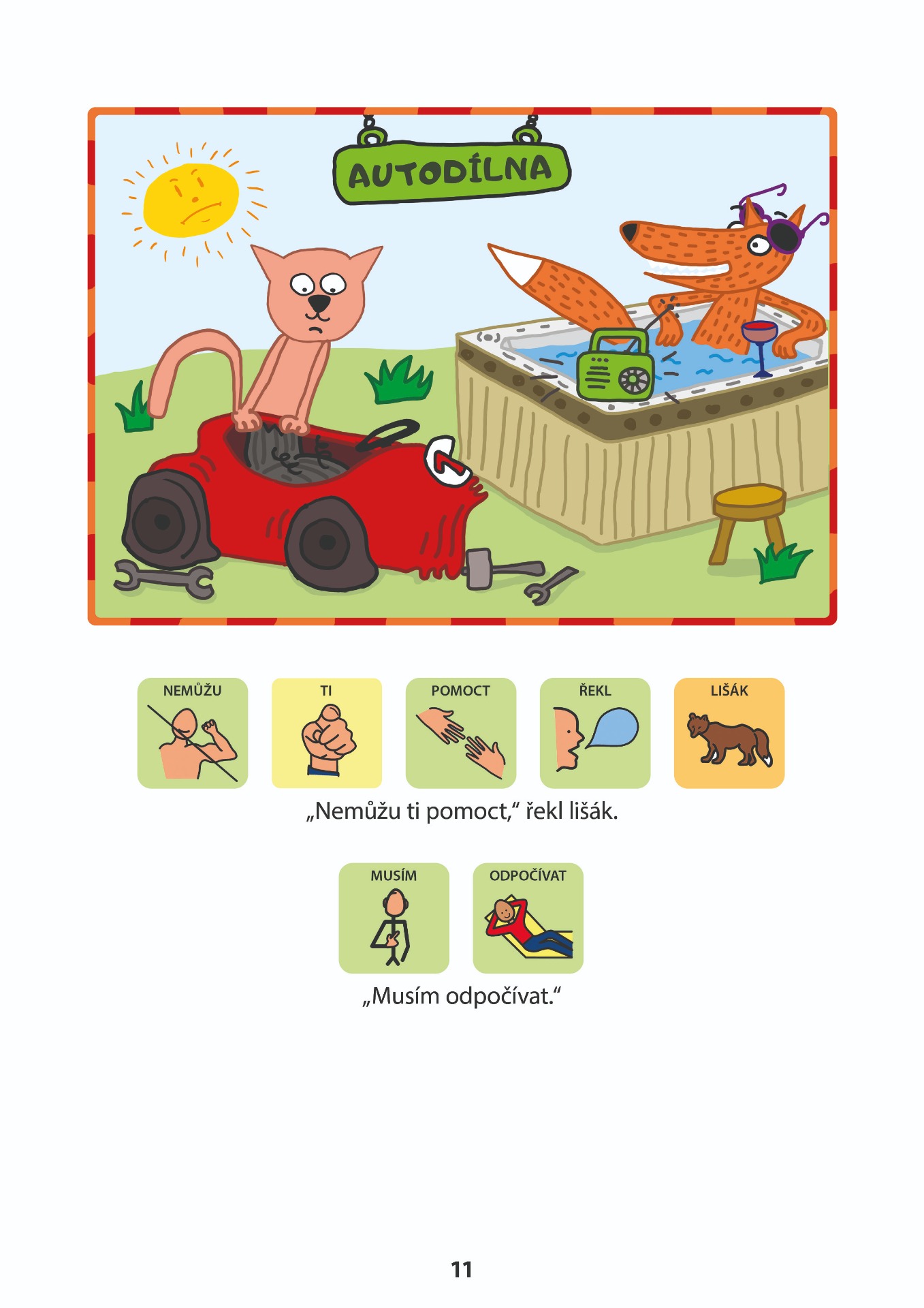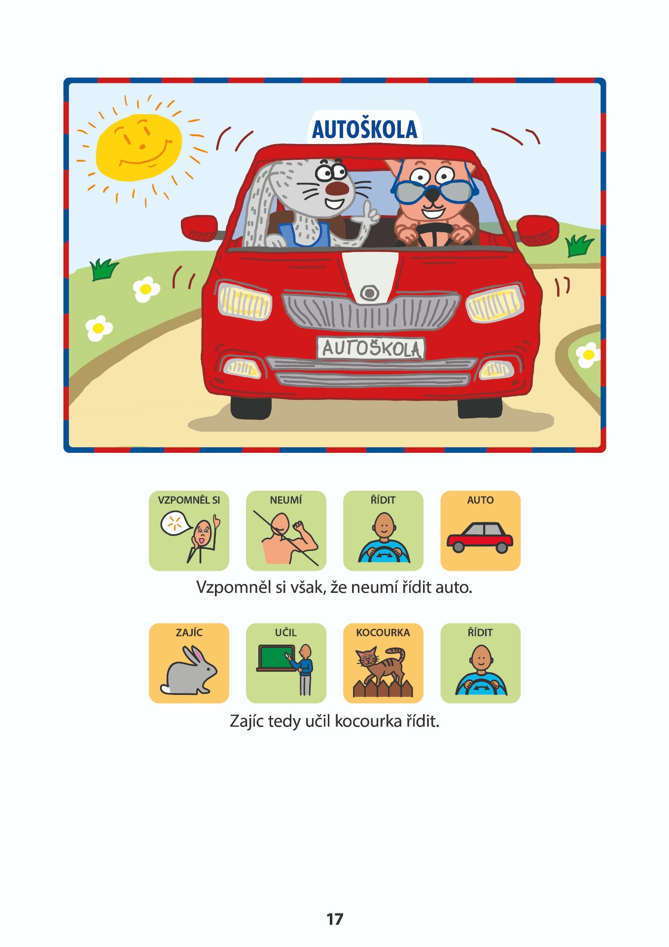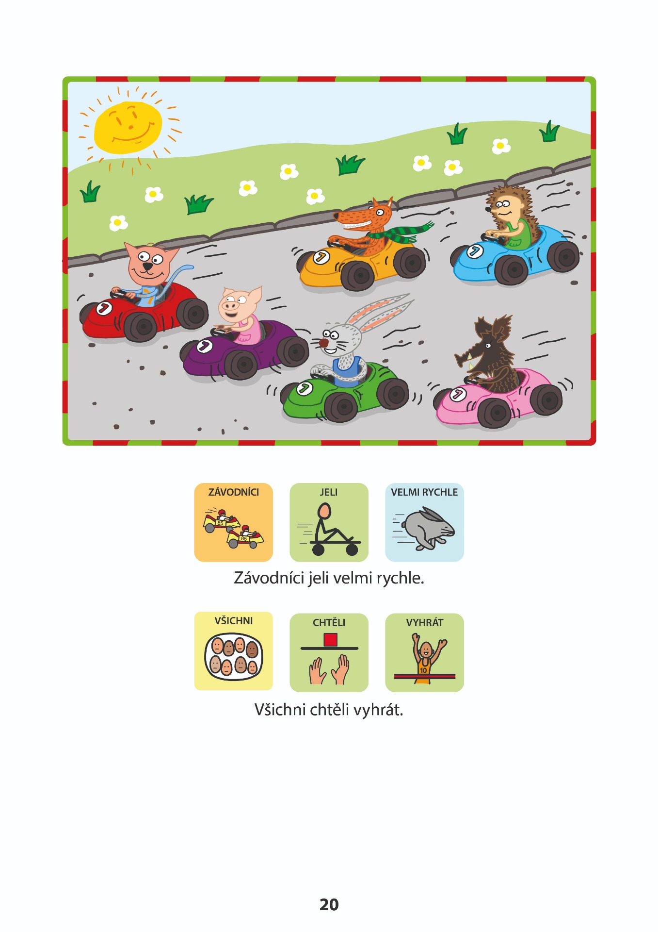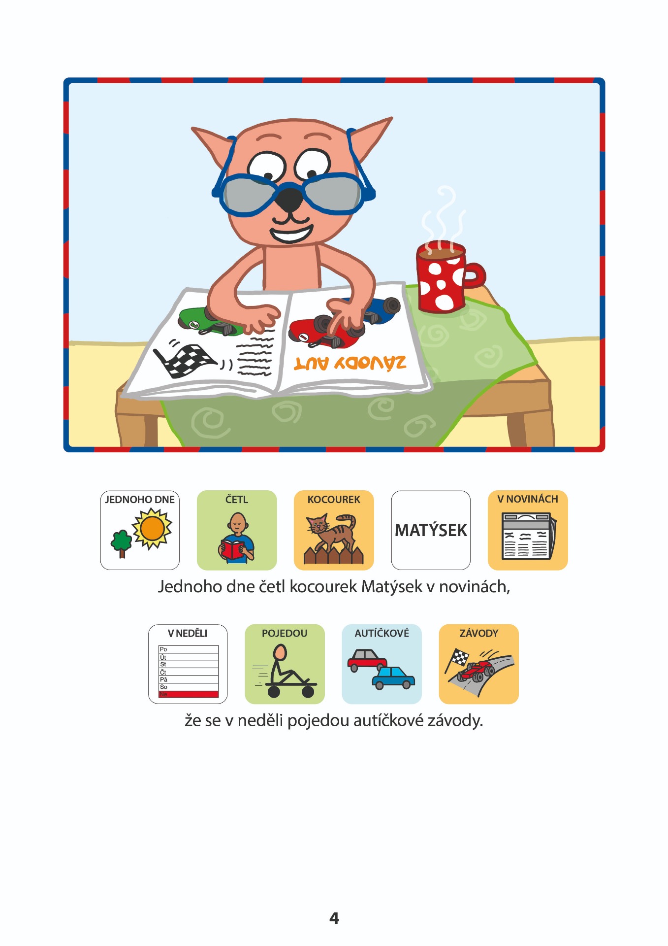 Veselý příběh kocourka, který touží po tom stát se automobilovým závodníkem a udělá vše pro to, aby se jím stal. Kniha je psána formou piktogramů/symbolů a je určena dětem s poruchou autistického spektra a vývojovou dysfázií. Text byl upraven pro snadné čtení, byla omezena symbolická slova, metafory a abstraktní pojmy. Vše je doprovázeno bohatými ilustracemi, jež mají za úkol maximální konkrétnost a lepší chápání vizuální komunikace.
